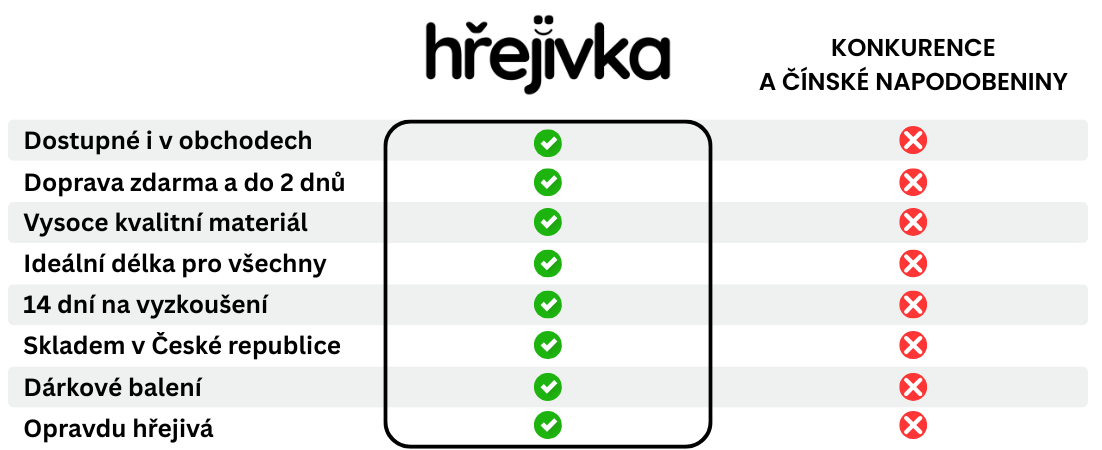 Na rozdíl od levných napodobenin z tenké látky je Hřejivka vyrobená z kvalitních, odolných materiálů, které si zachovávají hebkost i po mnoha praních.